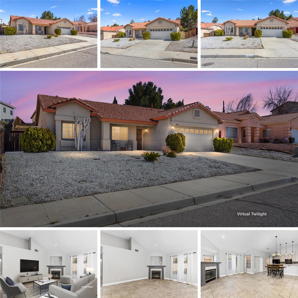 Welcome to 14828 Stone Age Lane, a beautifully maintained single-story retreat located in a quiet, established Victorville neighborhood. This 3-bedroom, 2-bathroom home offers 1,174 sq. ft. of comfortable living space designed for both relaxation and entertaining. Step inside to find an inviting open floor plan featuring a cozy fireplace in the family room—perfect for chilly high-desert evenings. The kitchen comes fully equipped with a gas range, microwave, and dishwasher, making meal prep a breeze. The primary suite and guest bedrooms are all conveniently located on the main level, featuring a mix of durable tile and plush carpet. Outside, enjoy low-maintenance desert landscaping and a private deck where you can soak in the stunning mountain views. With a 2-car garage, central AC, and no HOA fees, this home is the perfect blend of convenience and charm. Don't miss your chance to own this turnkey beauty!